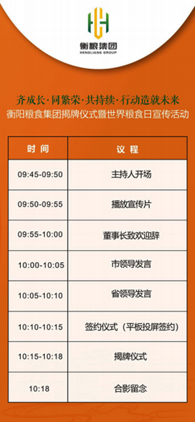 衡陽糧食集團揭牌儀式暨世界糧食日宣傳活動時間及議程