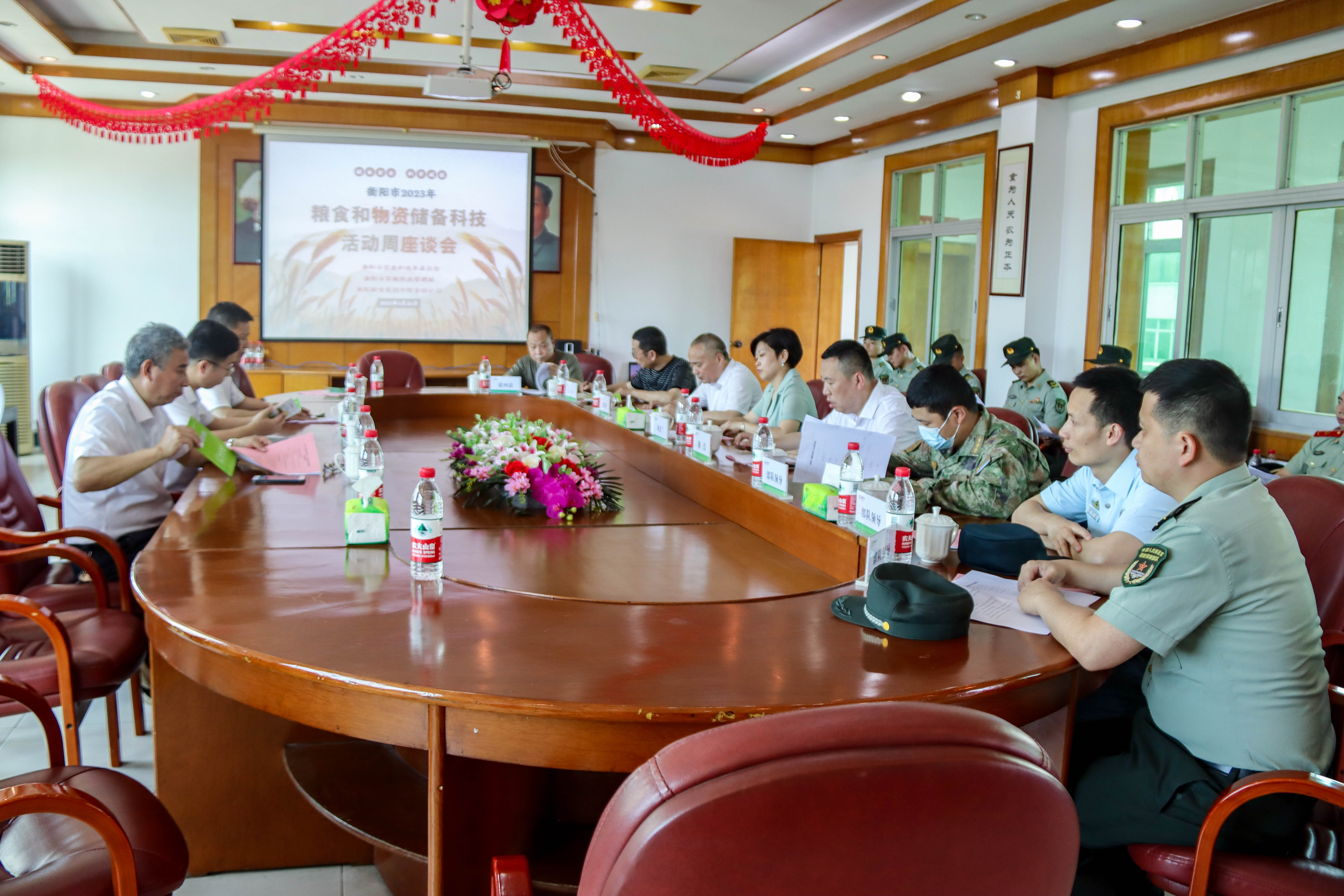 市發(fā)改委、集團(tuán)公司領(lǐng)導(dǎo)及駐衡官兵等活動人員現(xiàn)場參觀了三塘子公司糧油儲藏倉庫。尹培劍介紹了公司基本情況及現(xiàn)有科技儲糧技術(shù),三塘子公司相關(guān)負(fù)責(zé)人圍繞糧油保管、制作和加工、節(jié)糧減損等內(nèi)容開展糧油知識科普講座,增強(qiáng)官兵愛糧節(jié)糧、科學(xué)儲糧的思想認(rèn)識,進(jìn)一步提升軍糧保障能力,助力軍民軍政融合發(fā)展。